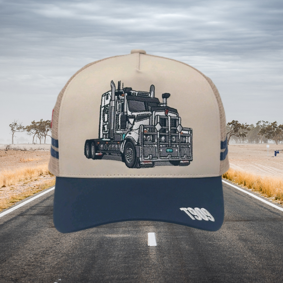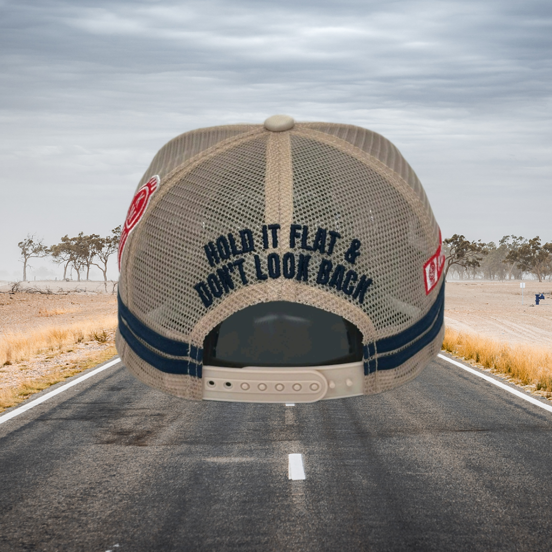 HOLD IT FLAT AND DON'T LOOK BACK Trucker Cap - If you know trucks, you know the Kenworth T909. Built tough for harsh Aussie outback, this rig's a deadset legend on the blacktop - long bonnet, big stacks and more grunt than a paddock full of bulls. It's the choice of real truckies who tackle road trains, red dirt and everything in between.