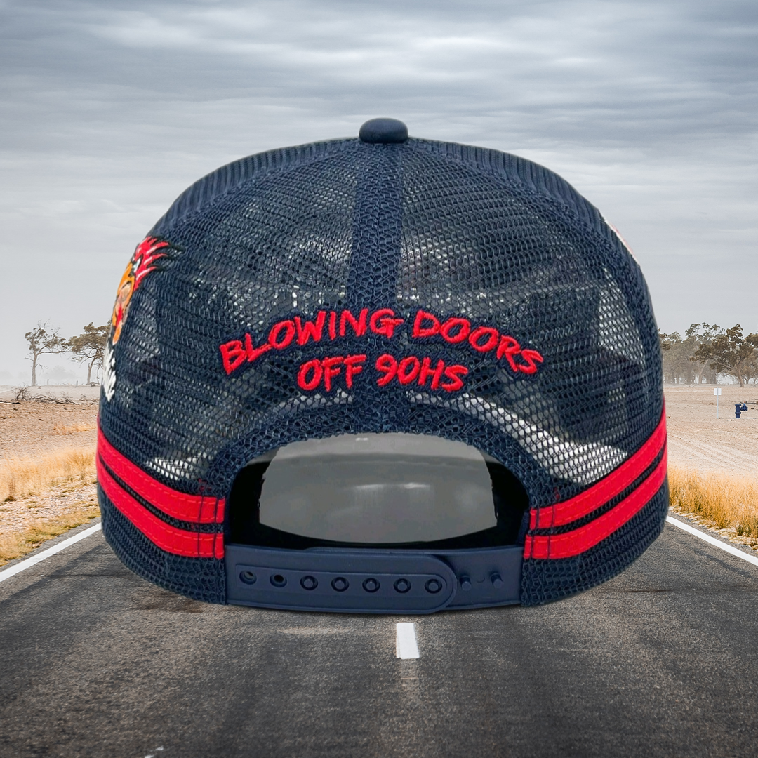 K200 BLOWING DOORS OFF 90HS TRACKER CAP - Push limits. Break boundaries. Blow the doors clean off. This trucker cap is built for the drivers who live wide open and don’t lift for anything. Designed with our signature Uppa fit, this cap brings together bold attitude and everyday comfort.