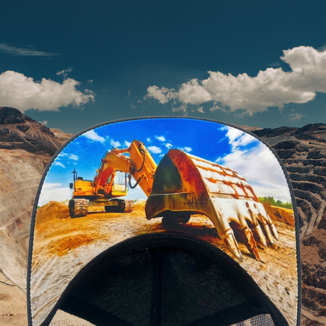 - Full detailed embroidered excavator on front